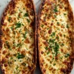 - Garnish and Serve: Remove the cheesy garlic bread from the oven, optionally garnish with fresh chopped parsley for a pop of color and freshness, then slice and serve warm to enjoy the gooey cheesy goodness.