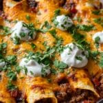 This Easy Cheesy Ground Beef Enchiladas recipe offers a delicious and satisfying Mexican-inspired main course featuring seasoned ground beef, melted Mexican blend cheese, and flavorful enchilada sauce wrapped in warm tortillas. Perfect for a comforting weeknight dinner or a festive gathering, these enchiladas are quick to prepare, customizable, and bake to bubbly cheesy perfection.