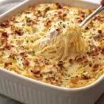 This Easy Chicken Noodle Casserole is a comforting, hearty dish that combines tender shredded chicken, wide egg noodles, creamy soup and sour cream, mixed vegetables, and a melty cheese topping. Baked to golden perfection, it’s a perfect family-friendly meal ready in under an hour.