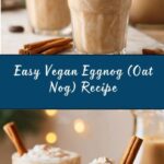 Serve your Easy Vegan Eggnog (Oat Nog) Recipe in elegant mugs dusted with cinnamon sugar, or try chilled glasses with a rim dipped in crushed candy canes for a holiday vibe. Adding edible flowers or a dusting of cocoa powder also brings an unexpected and festive flair to your presentation.