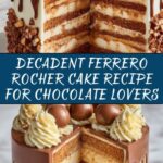This decadent Ferrero Rocher Cake combines moist hazelnut and cocoa-flavored layers with a rich Nutella buttercream, decorated with crunchy crushed wafers and hazelnuts. Perfect for special occasions or chocolate lovers, it delivers a delightful blend of textures and flavors inspired by the famous Ferrero Rocher chocolates.