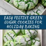 These Festive Green Sugar Cookies are easy-to-make, vibrant treats perfect for holiday celebrations. Made from a simple white cake mix dough tinted with green gel food coloring and coated in a sparkling blend of granulated and powdered sugar, these cookies bake up soft with a slight crisp on the edges, creating a delightful crackled appearance.