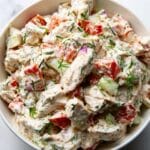 This Feta Chicken Salad is a quick and flavorful dish perfect for a light lunch or a hearty snack. Combining tender shredded chicken with crunchy vegetables and a creamy, tangy dressing made with feta cheese and herbs, this salad offers a delightful mix of textures and Mediterranean-inspired flavors. Ready in just 15 minutes and great for meal prepping or serving at gatherings.