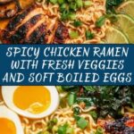 This Fiery Chicken Ramen is a flavorful and comforting dish featuring tender shredded chicken, spicy broth, fresh vegetables, and perfectly cooked ramen noodles. Enhanced with aromatic spices, chili paste, and savory sauces, this recipe delivers a deliciously spicy twist on classic ramen, garnished with boiled eggs, sesame seeds, and fresh lime for an irresistible and warming meal.