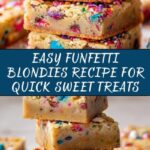 Serving your Funfetti Blondies Recipe at a party? Try cutting them into bite-sized pieces and arranging them on a vibrant platter alongside colorful candies or cupcakes for a fun dessert table display that everyone will love.