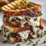 A quick and delicious Garlic Mushroom Grilled Cheese sandwich featuring sautéed garlic and mushrooms paired with melted cheese and buttery toasted bread, perfect for an easy lunch or cozy snack.