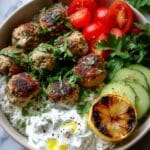 These Greek Chicken Meatballs are a flavorful and healthy Mediterranean-inspired dish made with ground chicken, feta cheese, fresh herbs, and aromatic spices. Perfectly cooked on the stovetop for a golden-brown crust and juicy center, they are a versatile meal option that pairs wonderfully with rice, pita, or a fresh salad. Ideal for a quick weeknight dinner, these meatballs also offer a gluten-free option by substituting breadcrumbs.