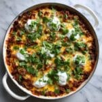 This Ground Turkey Enchilada Skillet is a quick and flavorful one-pan meal featuring lean ground turkey cooked with black beans, corn, and a rich enchilada sauce. Topped with melted cheddar cheese and fresh cilantro, it’s perfect for a comforting weeknight dinner served with tortilla chips, rice, or wrapped in tortillas.