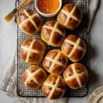 As soon as the buns come out of the oven, brush them with warm apricot jam. This step adds a shiny, sticky finish that locks in moisture and gives a subtly sweet, fruity glaze that makes these Hot Cross Buns Recipe extra special.