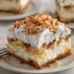 Island Dream Coconut Cream Bars are a tropical-inspired dessert featuring a buttery graham cracker crust layered with a rich coconut cream filling, topped with fluffy whipped cream and toasted coconut flakes. Perfect for a refreshing summer treat, these bars combine the sweetness of coconut and condensed milk with a creamy texture and a hint of vanilla.