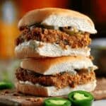 Toast your rolls lightly, then layer each with a grilled black bean patty, a slice of provolone cheese, several slices of the roasted jalapenos for topping, and a generous spread of the jalapeno cream cheese mixture on the bun. Serve immediately for the best melty, spicy, cheesy experience.