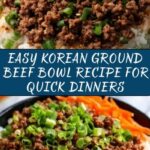 A flavorful and easy Korean Ground Beef Bowl featuring savory ground beef seasoned with soy sauce, garlic, and ginger, served over a bed of warm rice. Perfect for a quick weeknight meal, topped with fresh green onions and optional kimchi or a fried egg for added taste and texture.