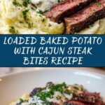 This Loaded Baked Potato with Steak Bites recipe features perfectly baked russet potatoes topped with juicy, seasoned steak bites sautéed in garlic butter and finished with a rich parmesan cream sauce, making it a hearty and satisfying meal ideal for dinner or special occasions.