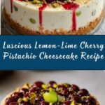 This Luscious Lemon-Lime Cherry Pistachio Cheesecake blends creamy, tangy cheesecake with crunchy pistachio nuts and a vibrant cherry topping, offering a delightful mix of citrus freshness and nutty texture. Perfect as a sophisticated dessert, it features a baked graham cracker and pistachio crust, rich lemon-lime infused cream cheese filling, and a sweet cherry topping.