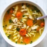 If you want to save some for later, you can freeze the Marry Me Chicken Soup Recipe but it’s best to freeze it without the cream. Freeze the broth, chicken, and veggies in portions and add fresh cream at reheating for the best taste and texture.