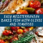 A flavorful Mediterranean baked fish recipe featuring tender white fish filets topped with a vibrant mix of cherry tomatoes, kalamata olives, capers, and fresh herbs. This healthy and easy dish combines classic Mediterranean spices like oregano, cumin, and smoked paprika with zesty lemon and garlic to create a deliciously aromatic meal perfect for weeknight dinners.