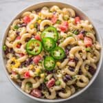 To take your Mexican Macaroni Salad Recipe to the next level, sprinkle it with extra fresh cilantro, a few slices of jalapeño for heat, or even some crumbled queso fresco for a creamy, salty touch. A dash of smoked paprika or chili powder on top adds a hint of color and spice that looks as good as it tastes.