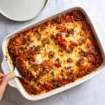 It would require some substitutions like using dairy-free cream cheese, sour cream alternatives, and vegan shredded cheese. It’s doable but changes the texture and flavor from the classic rich casserole experience.