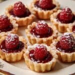 These Mini Raspberry Almond Tarts are delicate, bite-sized desserts featuring a buttery crust filled with a smooth almond cream and topped with fresh raspberries and sliced almonds. Perfectly baked to golden perfection, they offer a delightful balance of nutty and fruity flavors, making them an elegant treat for any occasion.