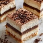 Line an 8×8 inch pan with parchment paper for easy removal later. Spread the biscuit mixture evenly across the bottom, pressing firmly so it sticks together well. Pop the pan into the fridge while you move on to the filling. Chilling helps the base set and prevents it from crumbling when you add the creamy layers.