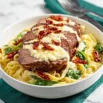 This dish freezes best when kept without the fresh spinach and sundried tomatoes, which can become watery or lose texture. Freeze the Alfredo sauce and cooked steak separately in freezer-safe containers for up to two months. When ready to eat, thaw overnight in the fridge before reheating gently.