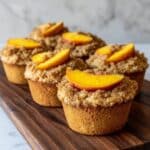 Peach Financiers are delicate and elegant French almond cakes boasting a moist, nutty crumb with a subtle caramelized butter flavor. These miniature cakes, topped with tender, peeled peach pieces, offer a perfect blend of fruity sweetness and almond richness, ideal for a refined dessert or afternoon tea treat.