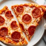 Reheat your Pepperoni Naan Pizza Recipe in a preheated oven at 375°F (190°C) for 7 to 10 minutes. Using a baking sheet helps keep the bottom crisp. Avoid microwaving if possible, as it can make the naan chewy and the crust less enjoyable.