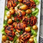 Absolutely! While bone-in, skin-on thighs are ideal for juicy flavor and crispy skin, you can use drumsticks, breasts, or even a whole spatchcocked chicken. Just adjust cooking times accordingly to ensure doneness.