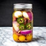 The beauty of this recipe lies in its simplicity. Each ingredient is carefully chosen to balance the acidity, spice, and savory notes. From the sharpness of white vinegar to the smoky depth of kielbasa, these essentials come together to create a snack that’s as colorful to the eye as it is to the palate.