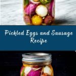 A tangy and savory pickled eggs and sausage recipe that combines hard-boiled eggs with smoked sausage in a spiced vinegar brine, making a perfect snack or appetizer with a zesty kick and long-lasting fridge life.