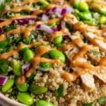 A vibrant and nutritious Quinoa Edamame Salad tossed with a creamy, flavorful peanut dressing. This light yet satisfying salad combines protein-rich quinoa and edamame with crisp fresh vegetables and a tangy, slightly sweet dressing perfect for a quick vegetarian meal or side dish.