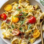 This Ranch BLT Pasta Salad is a flavorful and refreshing cold pasta salad perfect for summer gatherings or as a tasty side dish. It combines rotini pasta with crispy bacon, fresh lettuce, juicy cherry tomatoes, and shredded cheddar cheese, all tossed in a creamy ranch dressing blended with mayonnaise. Chilled before serving, this salad offers a delightful mix of textures and classic BLT flavors with a creamy twist.