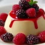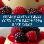This elegant and creamy Panna Cotta recipe features a silky vanilla-infused base made with heavy cream and gelatine, paired with a fragrant rose water raspberry sauce. The dessert is chilled until set and served with fresh lychees, raspberries, mint, and delicate rose petals, making it a perfect refined treat for special occasions or a sophisticated finish to any meal.