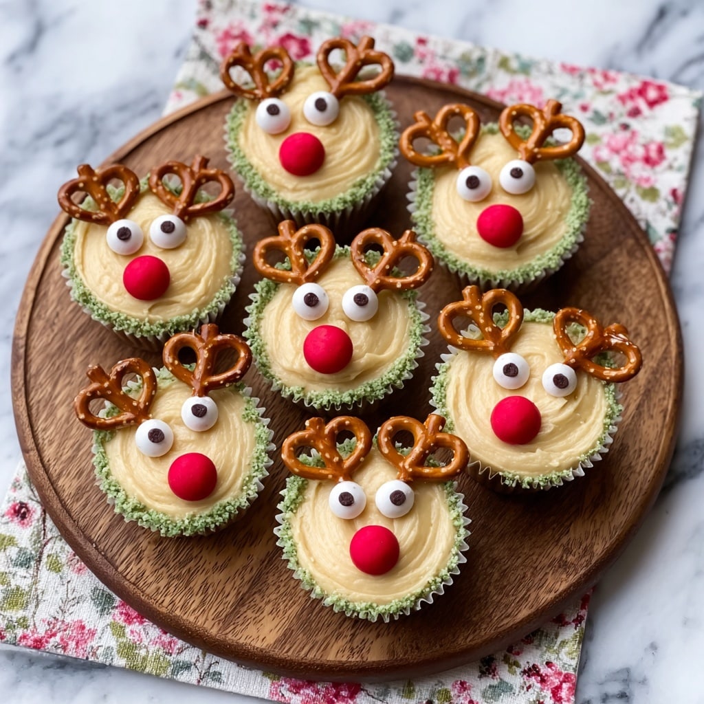 These festive Reindeer Face Carrot Cupcakes combine moist, spiced carrot cake with a creamy cream cheese frosting and charming reindeer decorations perfect for holiday parties and family gatherings. Each cupcake is topped with pretzel antlers, candy eyes, and a chocolate nose, making them a fun and delightful treat for kids and adults alike.