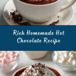 Serve this Rich Homemade Hot Chocolate Recipe in clear glass mugs to show off the velvety chocolate color, then add a cinnamon stick for stirring and aroma. For a holiday vibe, try colored mugs with themed straws or even float some peppermint candies on top for a festive twist.