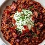 In a high-sided skillet over medium-high heat, cook the chopped bacon until it’s nice and crispy, about 8 to 10 minutes. Drain most of the excess grease but leave about a tablespoon—it’s pure flavor gold. Toss in the chopped onion and sauté for 5 minutes to soften and bring out natural sweetness. Add the roasted chiles and minced garlic, cooking another 2 minutes until fragrant and vibrant. Then sprinkle in kosher salt, ancho chile powder, brown sugar, dry mustard, and paprika. Let these spices toast gently for about 2 minutes to fully release their aromatic magic.