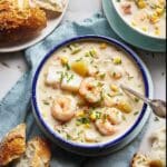 This rich and comforting Seafood Chowder combines a medley of fresh seafood with creamy broth, tender vegetables, and crispy bacon for a hearty meal. Perfect for seafood lovers, it uses a roux-based method to create a smooth, velvety texture enhanced by wine and fragrant seasonings, served with crusty bread for a satisfying experience.