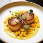 If you want to impress even more, try serving this Seared Scallops with Smoky Sweet Corn Purée Recipe in shallow bowls with a drizzle of herb-infused olive oil around the edges. Or create a modern look by using a ring mold to neatly deposit the corn purée, topping it with the scallops and a delicate herb sprig for a touch of elegance.