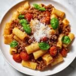 This Simple Bolognese recipe offers a hearty and flavorful Italian classic made with ground beef, fresh vegetables, and aromatic herbs, served over your choice of pasta. Perfect for a comforting family meal, it combines slow-simmered crushed tomatoes and savory spices to create a rich sauce that clings beautifully to mezzi rigatoni or pappardelle.