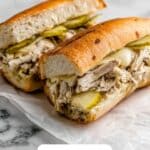Slow Cooker Chicken Philly Sandwiches are a delicious and easy-to-make meal featuring tender shredded chicken cooked with bell peppers and onions in a savory broth. Finished with melted provolone cheese on toasted hoagie rolls, this classic American comfort food is perfect for busy weeknights or casual gatherings.