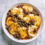 Before serving, sprinkle chopped green onions or fresh parsley on top to add a fresh burst of color and a mild, lively flavor that brightens each mouthful of this hearty dish.