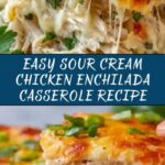 This Sour Cream Chicken Enchilada Casserole is a comforting layered dish combining tender shredded chicken, corn or flour tortillas, and a creamy sour cream and enchilada sauce. Topped with a blend of cheddar and Monterey Jack cheeses, this casserole is baked to bubbly perfection and garnished with fresh herbs and spicy jalapeños for a flavorful Mexican-inspired meal perfect for family dinners.