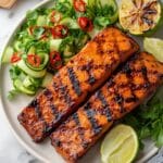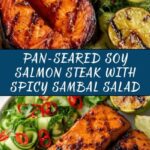 Soy Salmon Steak with Sambal Salad is a bold and flavorful Asian Fusion dish featuring umami-marinated salmon steaks pan-seared to perfection, paired with a spicy and tangy sambal-infused salad. This meal offers a delicious balance of savory soy glaze, spicy sambal heat, and fresh crisp vegetables, making it ideal for a quick and satisfying dinner for two.