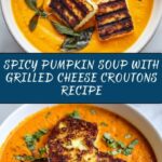 This Spicy Pumpkin Soup with Grilled Cheese Croutons is a comforting and flavorful fall-inspired dish. Creamy pumpkin puree is infused with warming spices and a touch of maple syrup for sweetness, then blended into a velvety soup. Topped with crispy, gooey grilled cheese croutons, it’s the perfect cozy meal for chilly days.