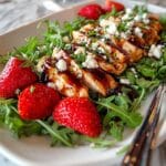 If you’re bringing this to a picnic or serving guests, try layering the salad ingredients in a clear glass bowl or individual mason jars for a fun, visual presentation. You can also serve the chicken on a bed of greens with the strawberry and feta mixture spooned on top as a composed plate. Either way, the stunning colors will impress everyone!
