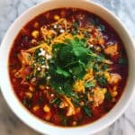 Finally, taste and season with salt and pepper as needed. Ladle your piping hot Street Corn Chicken Chili into bowls, ready for the optional garnishes that will add freshness and that authentic street corn vibe!