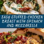 This Stuffed Chicken Breast recipe features tender boneless, skinless chicken breasts filled with a flavorful mixture of fresh spinach, sun-dried tomatoes, mozzarella cheese, and garlic. The chicken is seared to golden perfection and then baked to juicy, melty goodness, making it an impressive yet easy meal perfect for family dinners or special occasions.