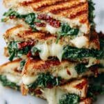 While not ideal to freeze fully assembled and grilled sandwiches because the bread can become soggy, you can prepare the components ahead—mix cheese, chop sun-dried tomatoes, and wash spinach—and freeze them separately. Assemble and grill fresh when ready for best results.