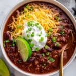Ideally, your chili will be thick enough to cling to a spoon but still saucy enough to feel hearty and comforting. You can control the consistency by adjusting the water during simmering—make it slightly thinner or thicker based on your preference.
