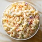 This salad is best served cold or at room temperature. Reheating is unnecessary and will affect the creamy texture and freshness that make this Sweet Macaroni Salad Recipe so special.
